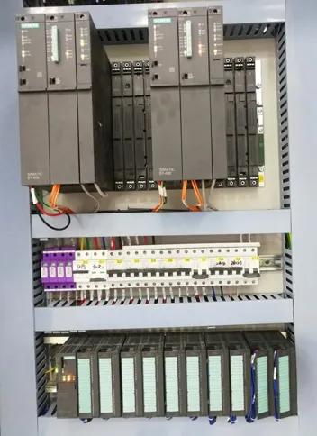 The TRT unit consists of eight major systems: a turbine main unit, a large valve system, a lubrication system, a hydraulic servo system, a drainage system, a nitrogen sealing system, a high/low voltage power distribution system, and an automatic control system. A redundant 400H CPU serves as the control system, connected to a Huceen H7-300 series module via a 153-1 interface module and a hot-swappable rail. Two industrial computers are connected to the CPU via 1613 network cards as the host computers.